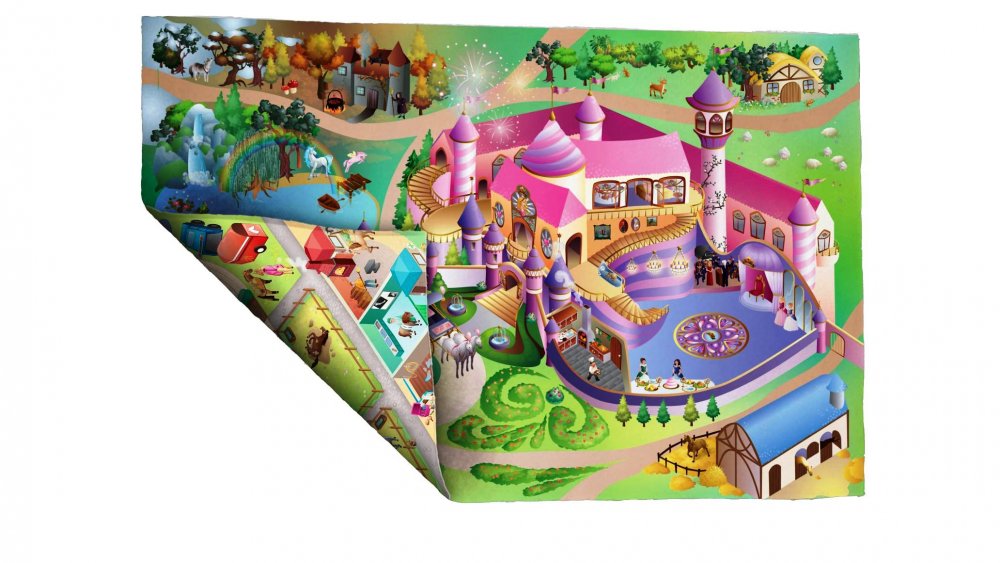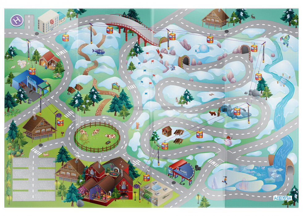 K dostání je u Vopi.cz více koberců s tímto námětem. Najdete zde jiný typ farmy, nebo koberec znázorňující rušné velkoměsto, menší město u moře atd. Vyberete i holčičkám, protože existují i koberce poseté cestami, ovšem laděné dorůžova. Třeba dětská podložka oboustranná „Zámek – Jízdárna“.